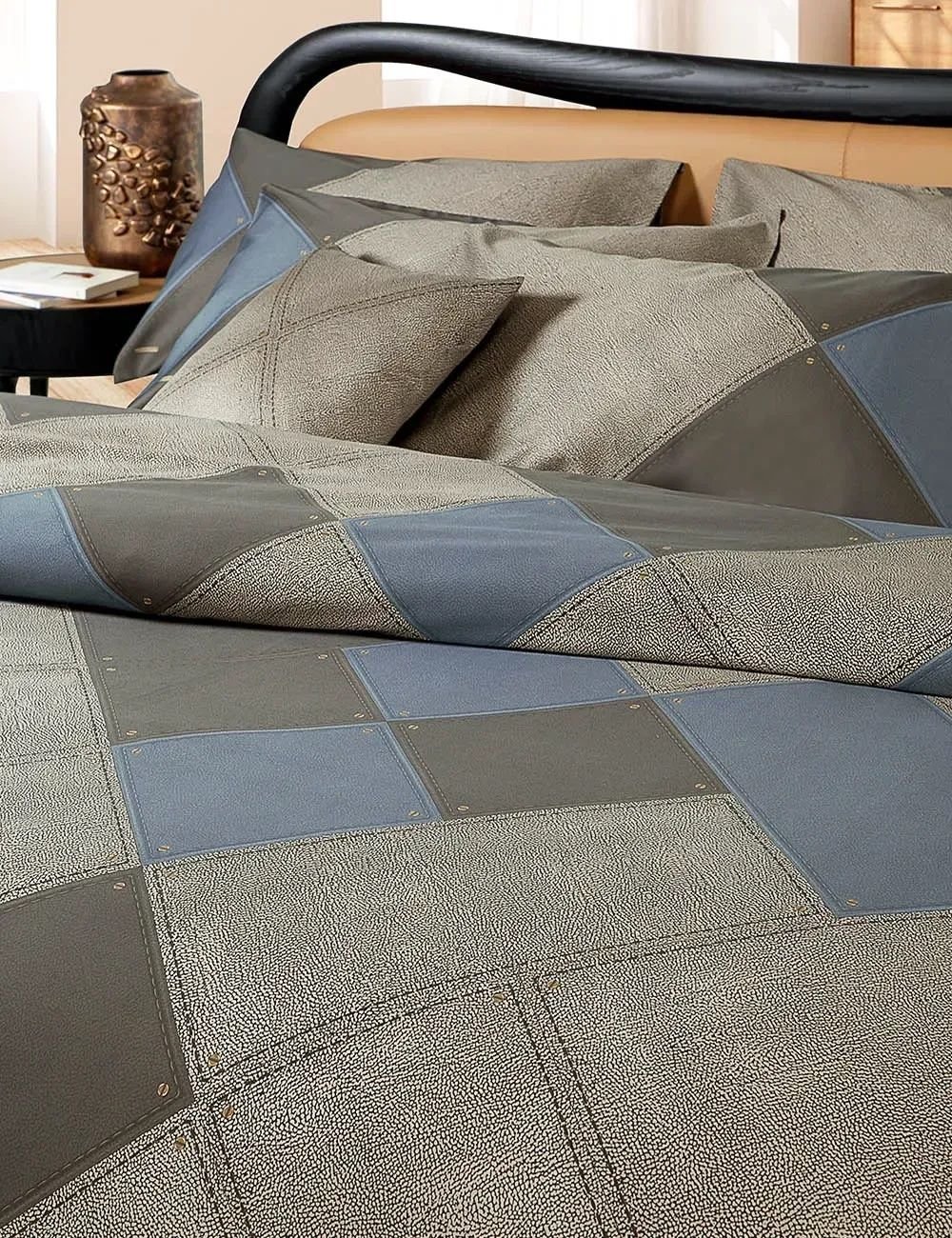 Completo copripiumino double-face in raso di puro cotone 300 T.C. La parte superiore della sacca e delle federe sono stampate con design personalizzato dall’iconica texture “OP” Occhio di Pernice; la parte inferiore della sacca e delle federe con motivo “OP” coordinato; il sotto con angoli è in tinta unita. Vesti di eleganza la tua casa, con l’esperienza di Tessitura Randi e il design iconico Borbonese.