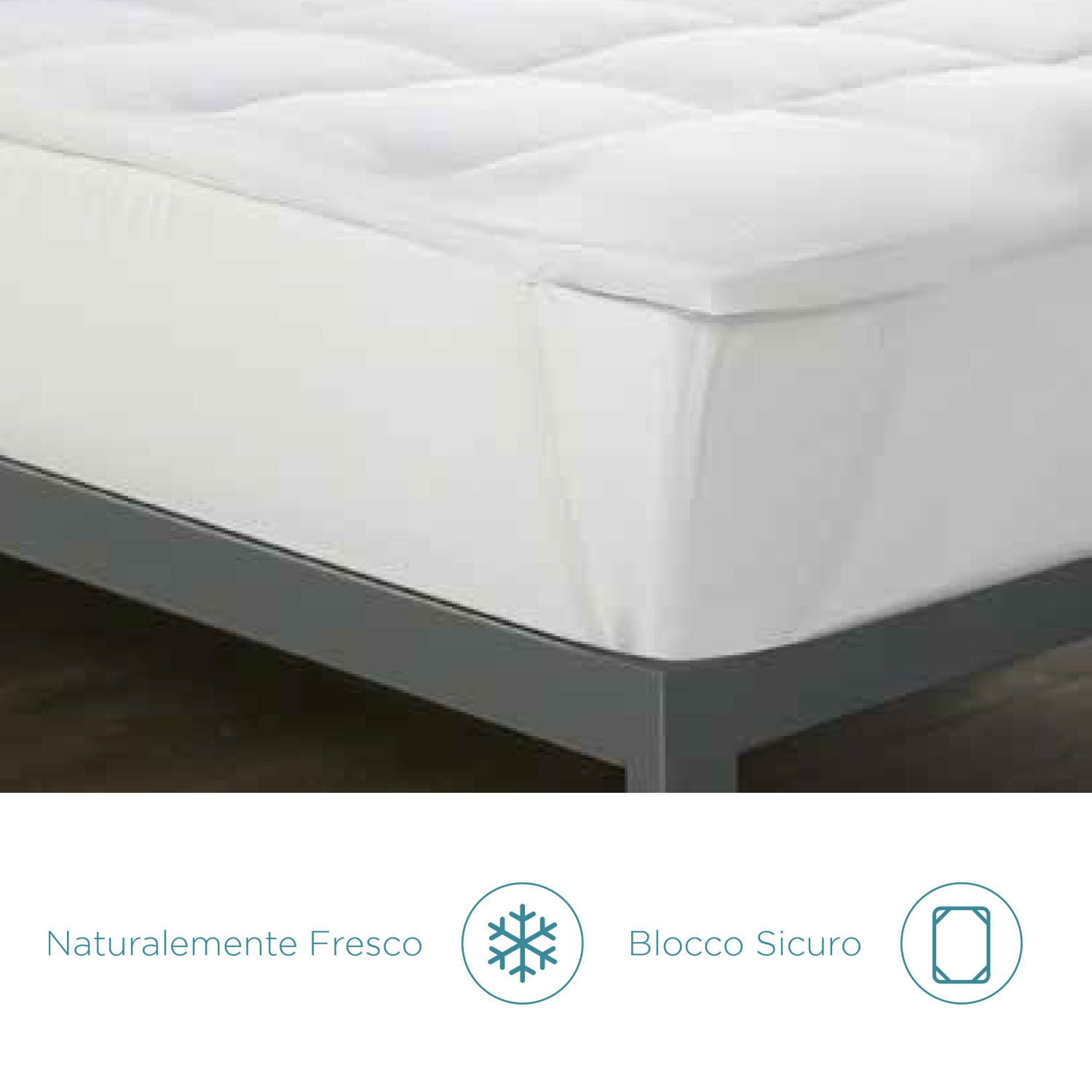 Con elastici angolari studiati appositamente per mantenere il topper saldo al materasso. Privo di sostanze nocive secondo la certificazione Oeko-Tex Standard 100.