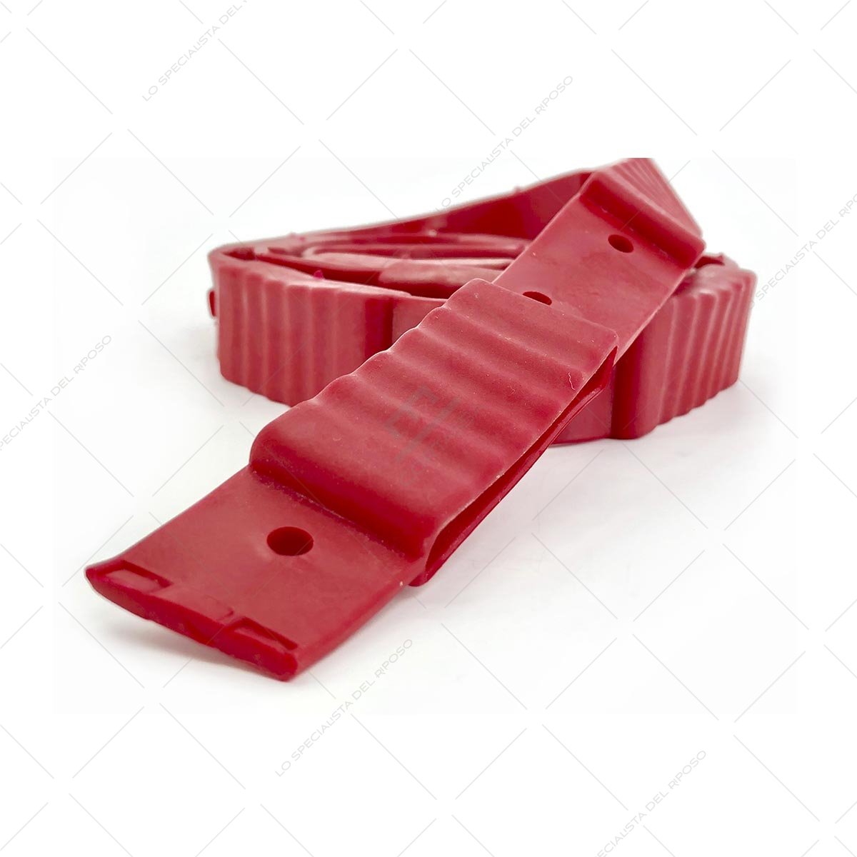 Doga avvolgibile formato da 14 listelli uniti da una guaina portadoghe in gomma elastica e indeformabile, di facile installazione tramite dei pratici fori che permettono il fissaggio alla struttura.