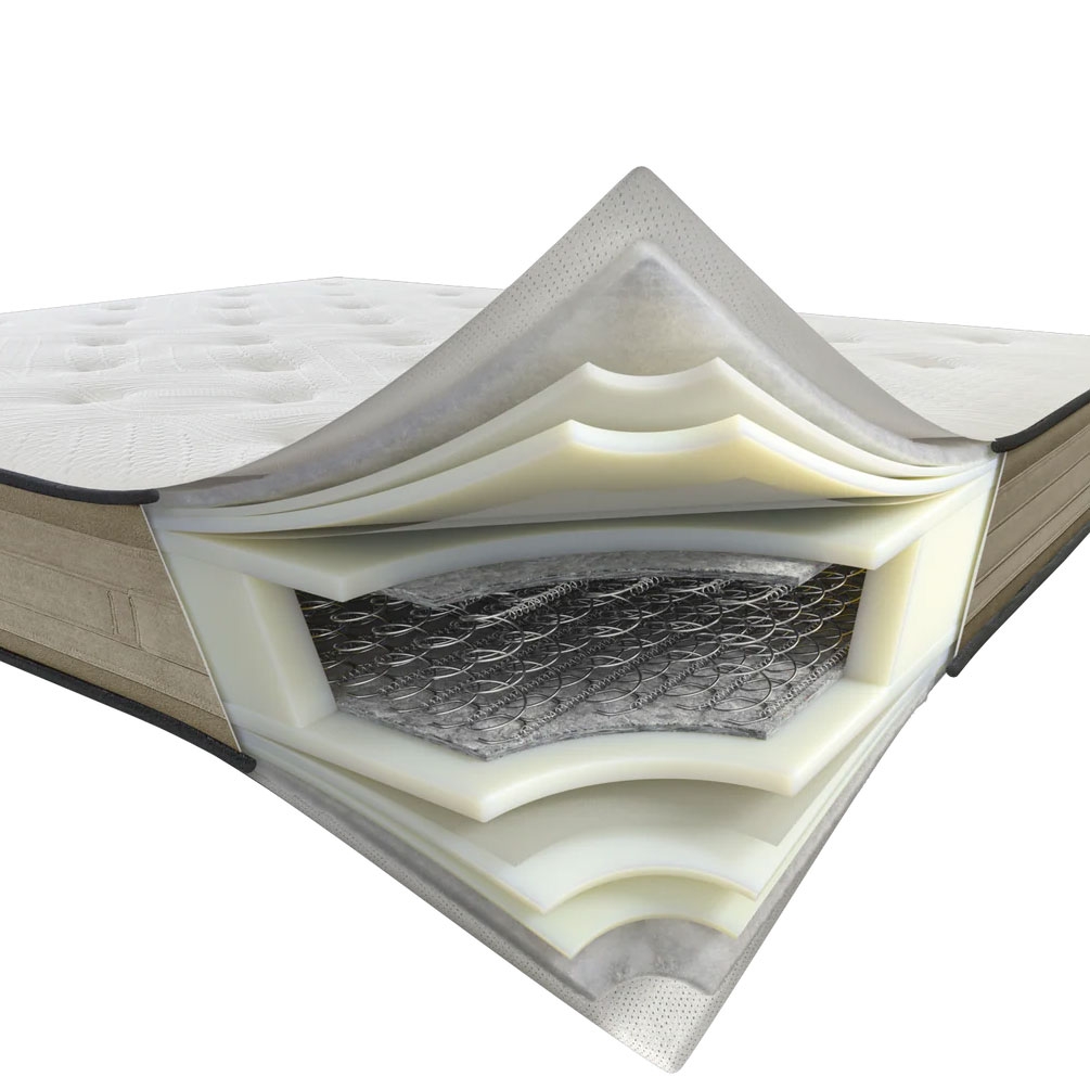 - Struttura a molle interconnesse DualCore: il cuore del materasso è costituito da un sistema di molle collegate tra loro che reagiscono in modo sinergico ai movimenti del corpo, offrendo un sostegno elastico e progressivo.