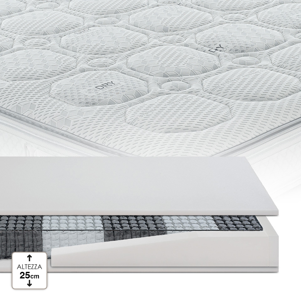Questo rivestimento mantiene il corpo asciutto e fresco durante il sonno. L’utilizzo di una particolare fibra tecnica innovativa e leader nella gestione dell’umità, conferisce al tessuto un ottimo controllo regolatore della temperatura della pelle e dell’idratazione corporea.