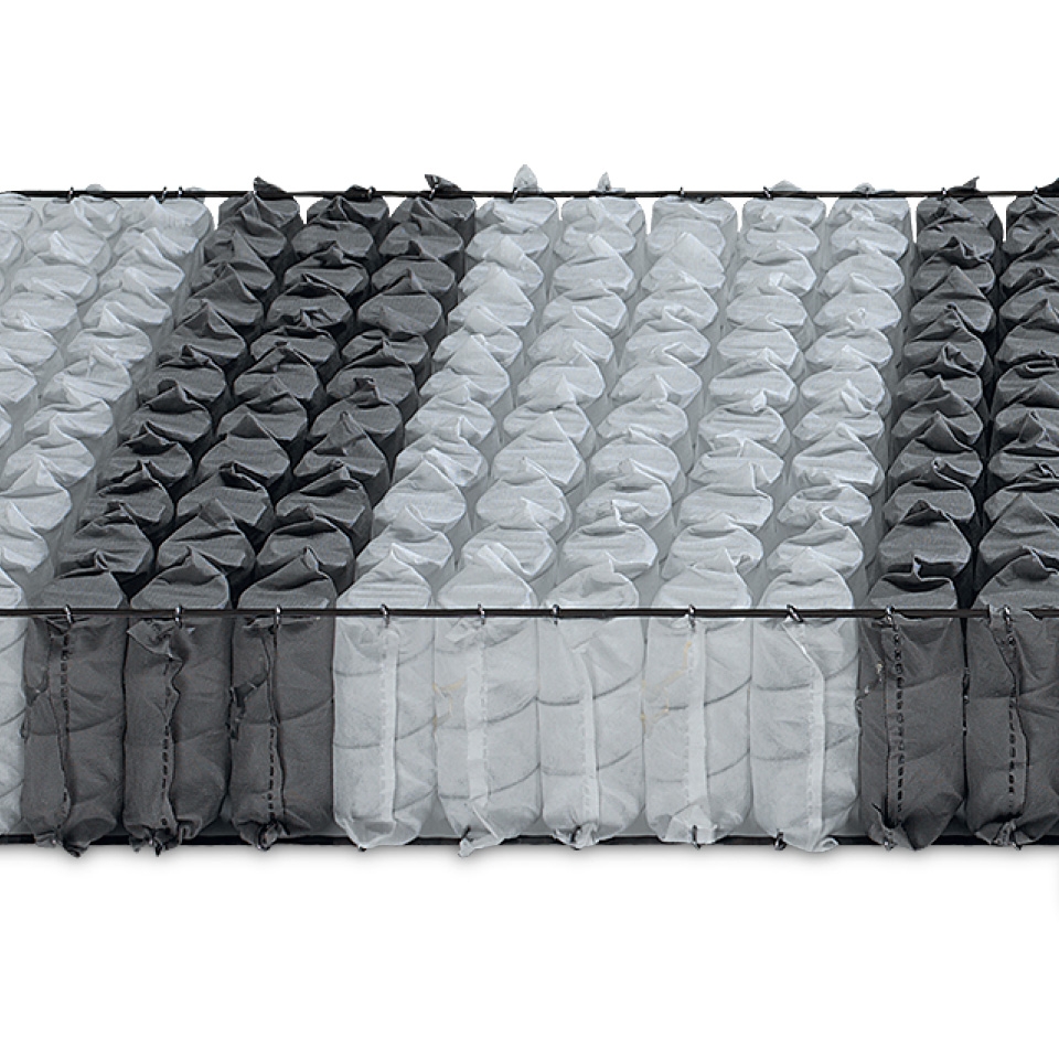 Molleggio a 800 Molle (nella versione matrimoniale), insacchettate e indipendenti, con struttura a 7 zone differenziate, per chi preferisce il tradizionale sistema a molle con tutti i benefici di un sostegno anatomicamente corretto.