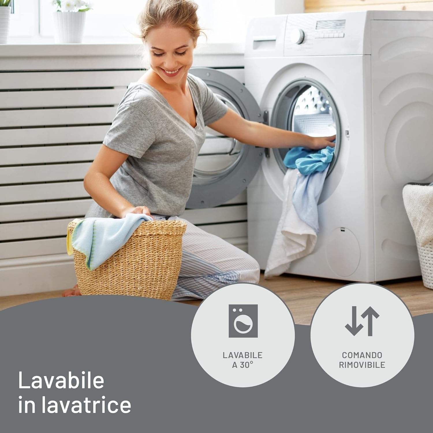- Comando removibile per lavare il prodotto, lavabile a mano e in lavatrice a 30°C