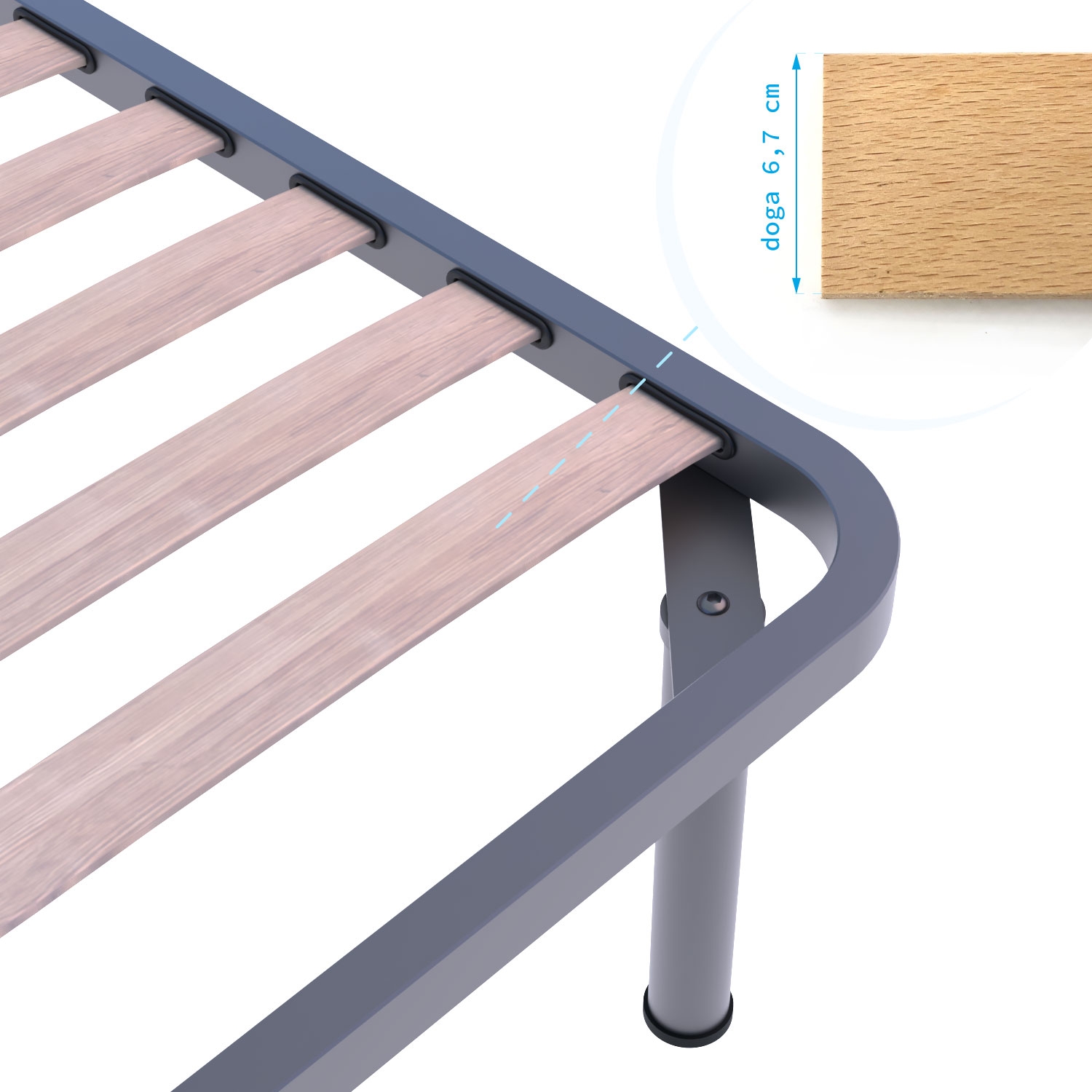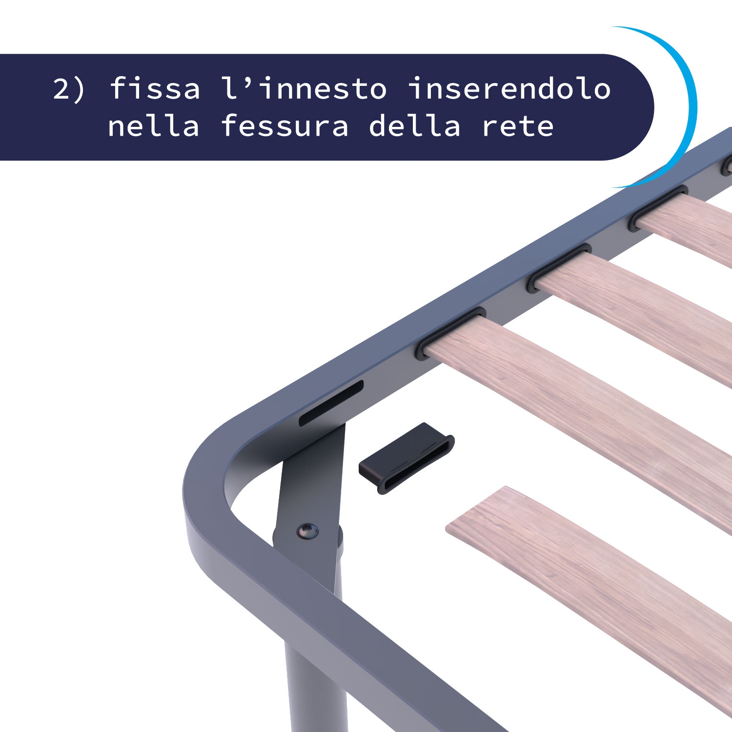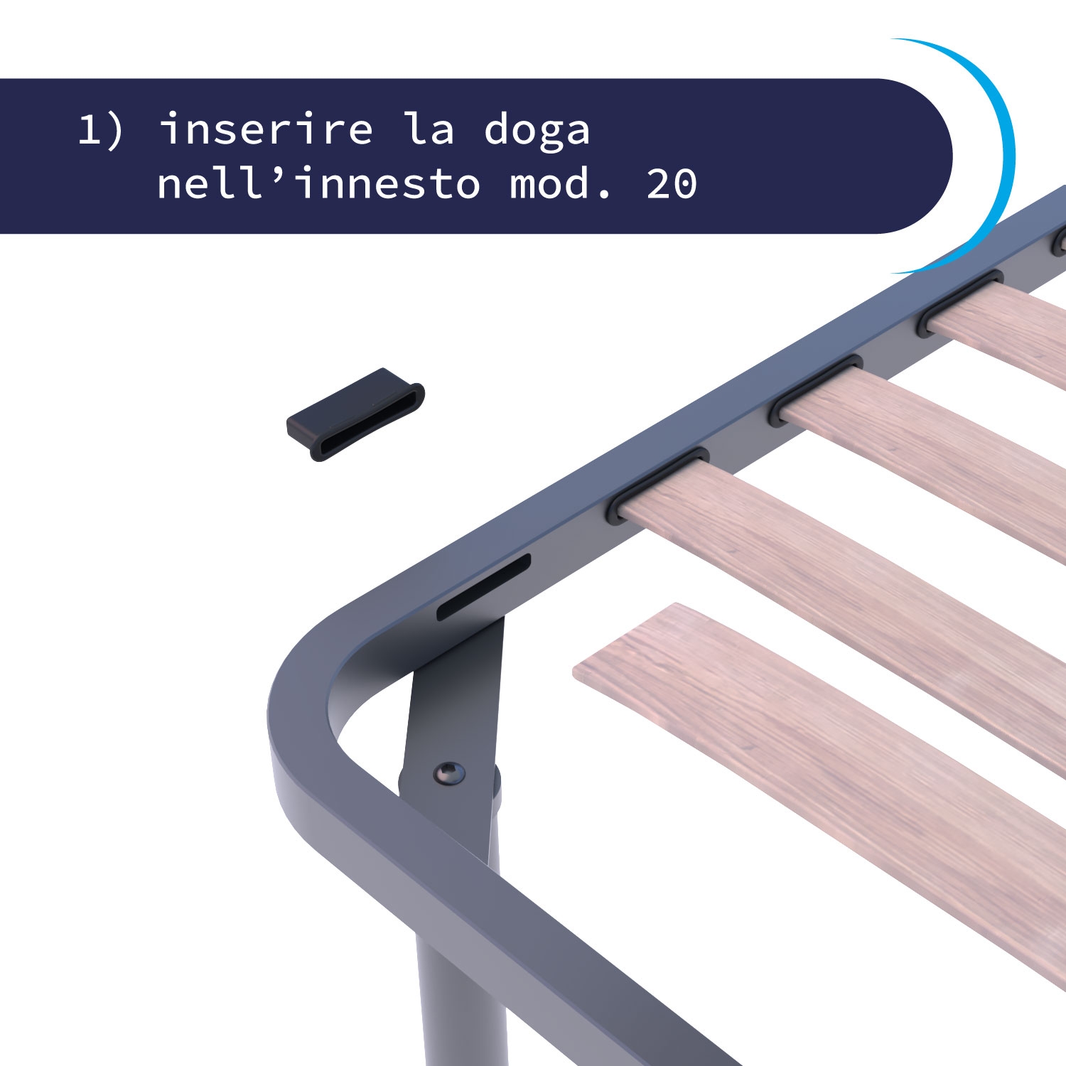 - Fissa l’innesto nel telaio: inseriscilo da un lato e, con una leggera pressione, sfrutta la curvatura naturale della doga per completare il montaggio