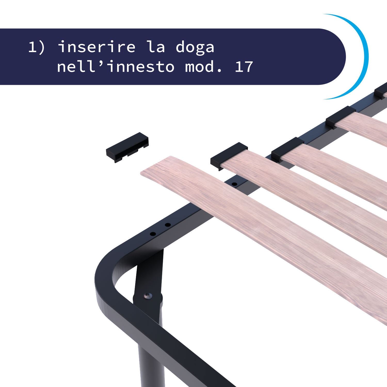 - Prima di fissare l’innesto al telaio, inserisci il listello nell’apposito vano dell'innesto