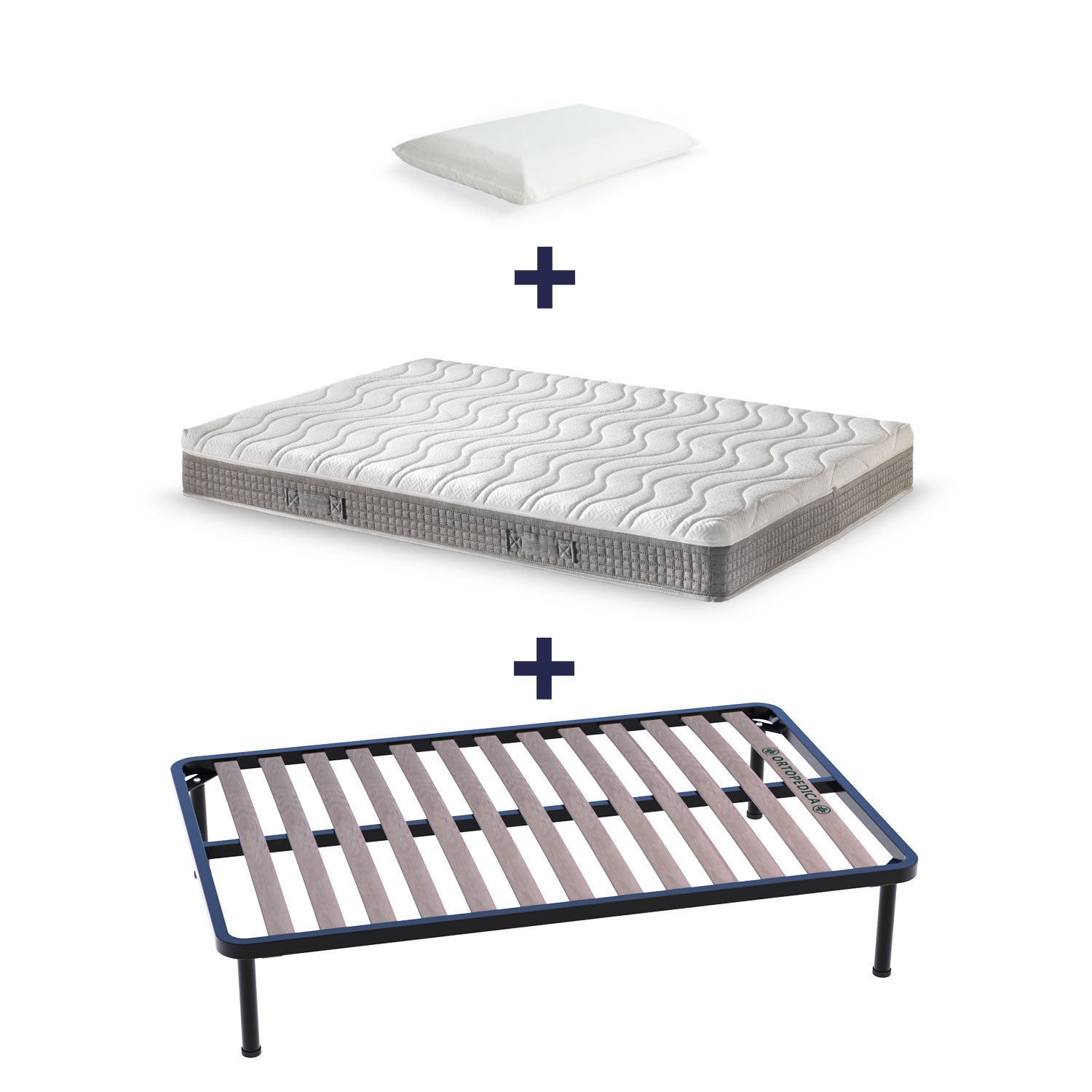 Kit letto completo rete a doghe materasso memory e guanciale memory
