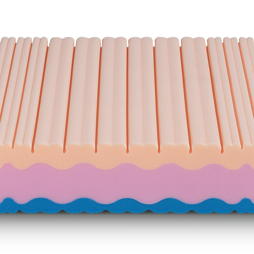 Sagomatura anatomica, le 5 zone di contatto offrono un supporto progressivo e graduale del corpo.