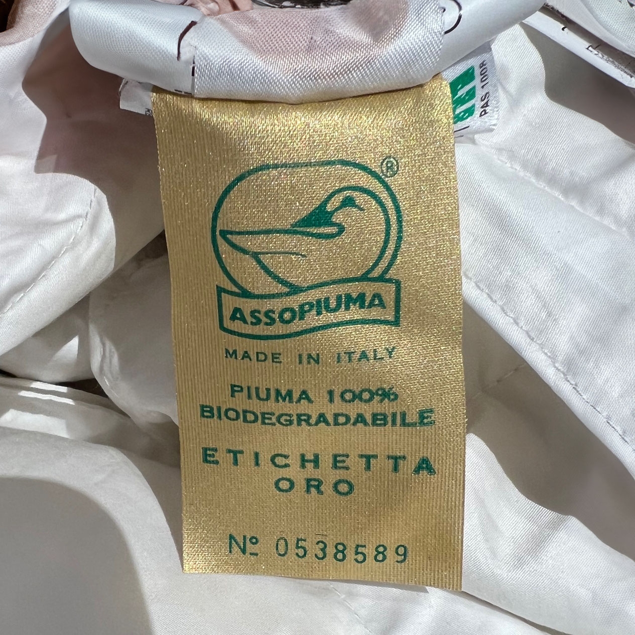 - ASSOPIUMA: garantisce che le informazioni riportate in etichetta sulla composizione ed il trattamento delle imbottiture siano veritiere e corrette a rispetto della norme igienico – sanitarie vigenti (Normativa Europea EN 12934).