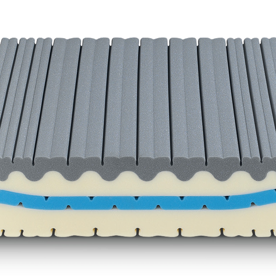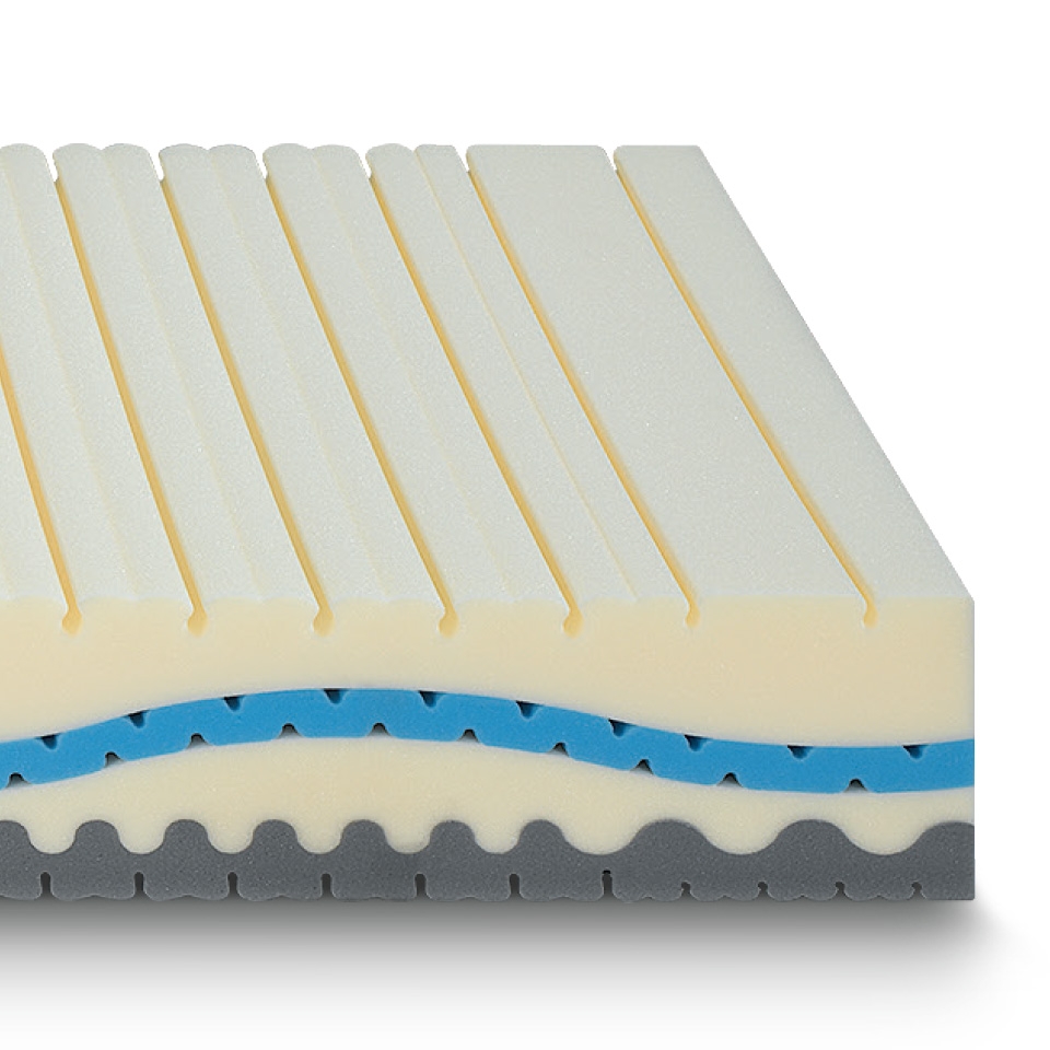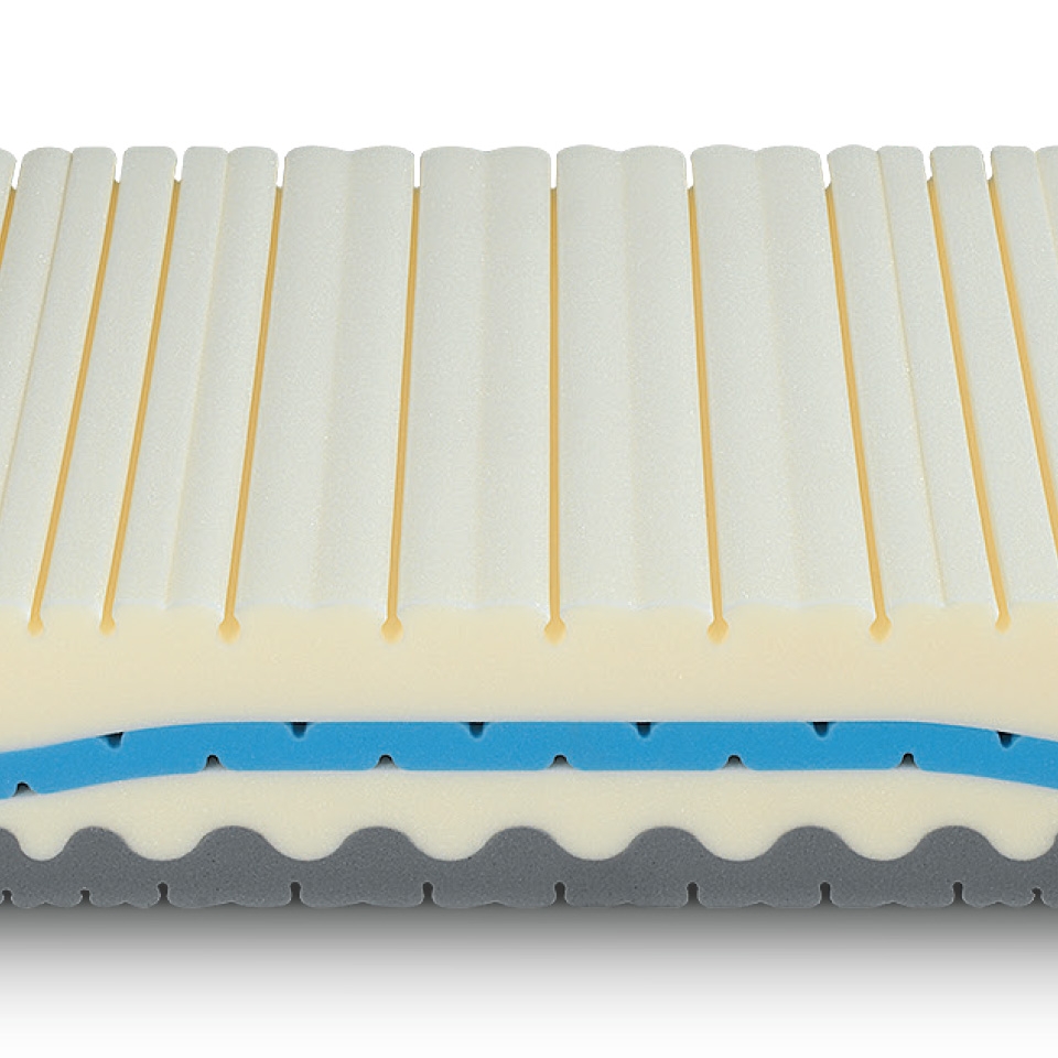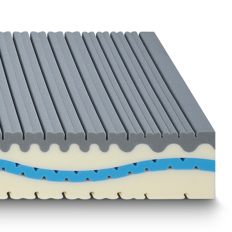 Comfort Equilibrato, superficie di contatto sagomata in Water Foam e Memory Foam Breeze per un supporto del corpo bilanciato.