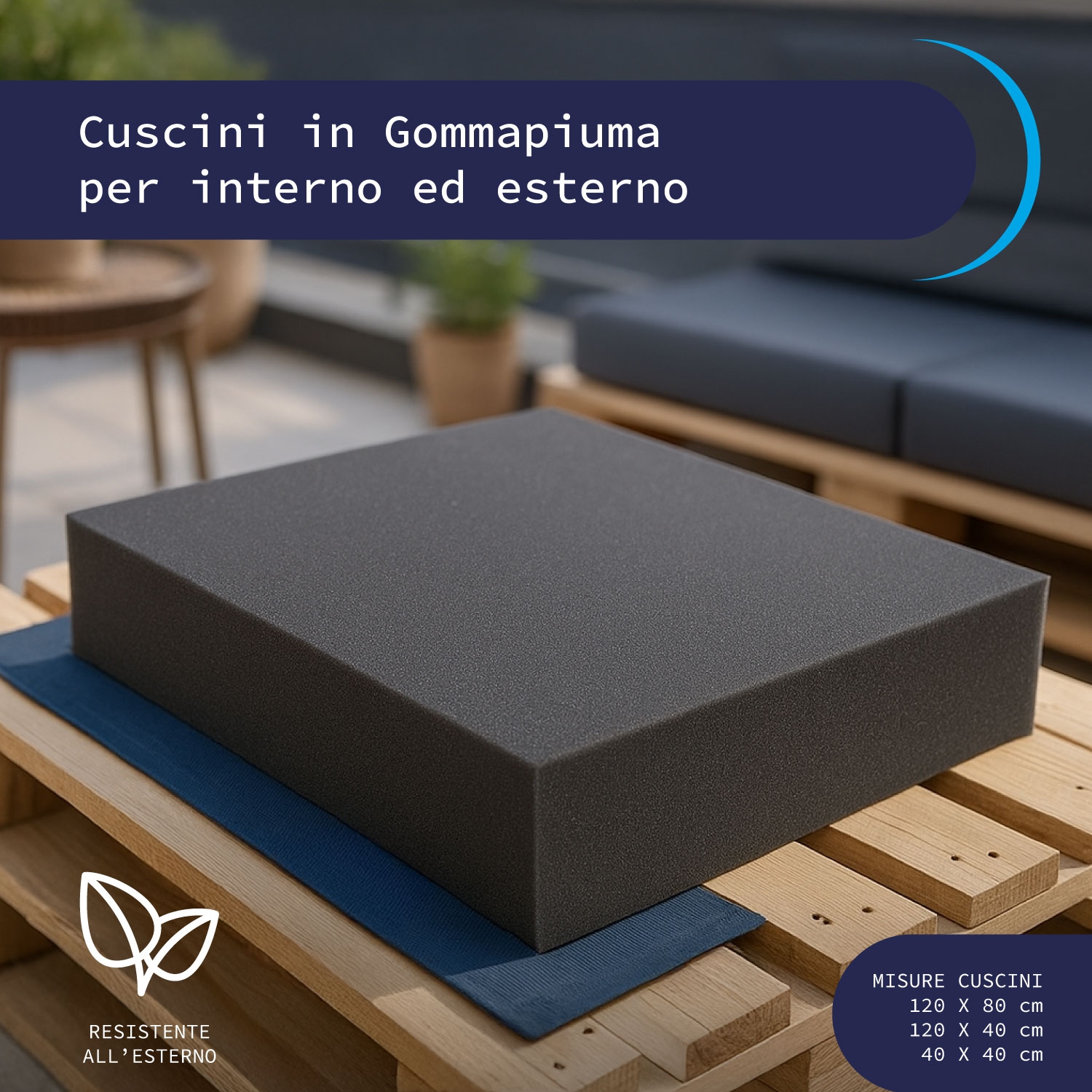 Con le lastre in gommapiuma per pallet Soluko puoi completare il tuo divano in pallet fai-da-te in maniera veloce e pratico. Soluko – Cuscini in Gommapiuma per Divani da Esterno e Pallet – Densità T22 – Colore Grigio Antracite – Misure 40×40, 40×120, 80×120, 100X200 cm – Ideali per Giardini, Terrazze e Balconi Dona nuova vita al tuo spazio esterno con i cuscini in gommapiuma Soluko, pensati per trasformare bancali, panche e pallet in comodi divanetti da giardino. Realizzati in poliuretano espanso T22, questi cuscini offrono un perfetto equilibrio tra comfort e sostegno. La densità media garantisce una seduta morbida ma resistente all’uso quotidiano, perfetta per rilassarsi in terrazza, in veranda o sul balcone. Disponibili in 4 formati standard – 40×40 cm, 40×120 cm, 80×120 cm e 100×200 cm – ideali per creare set modulari personalizzati.