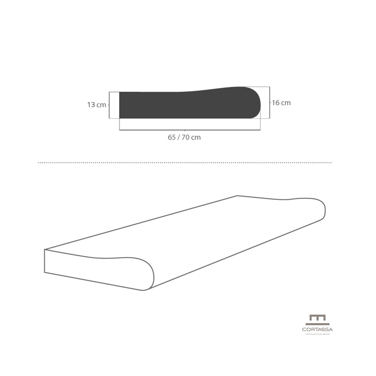 Misure: Altezza – 13 cm dietro, 16 cm davanti. Profondità – 65 cm o 70 cm.