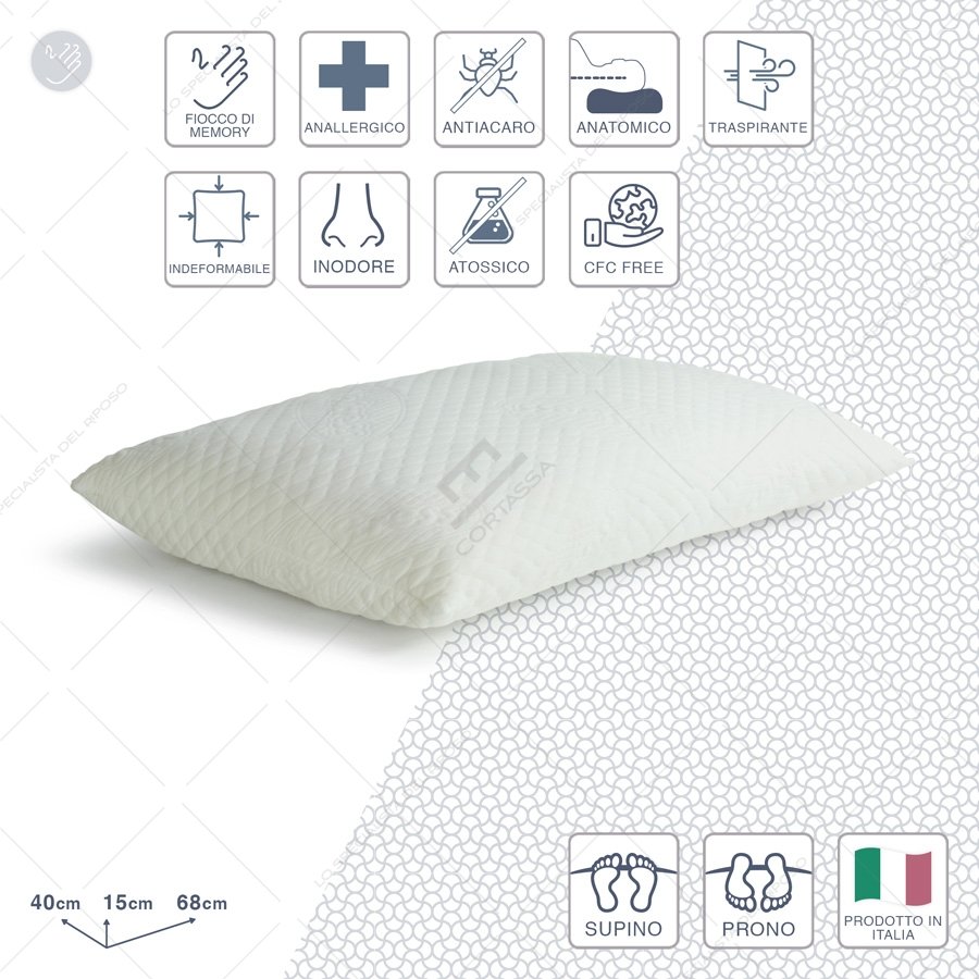 Guanciale in Fiocco di memory avvolgente morbido e automodellante