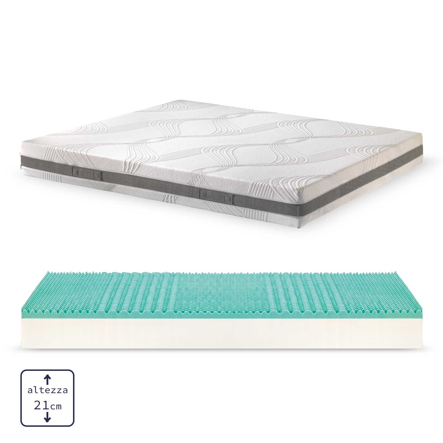 - Strato 1 – Memory 5 cm: accoglienza progressiva, riduce i punti di pressione e migliora il microclima superficiale.