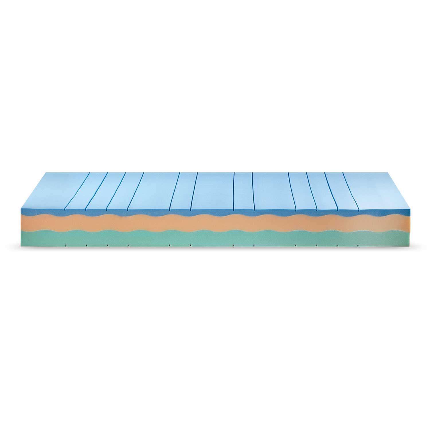 - Strato 3 – Schiuma Flessibile rigida 8 cm: base portante elastica e duratura.