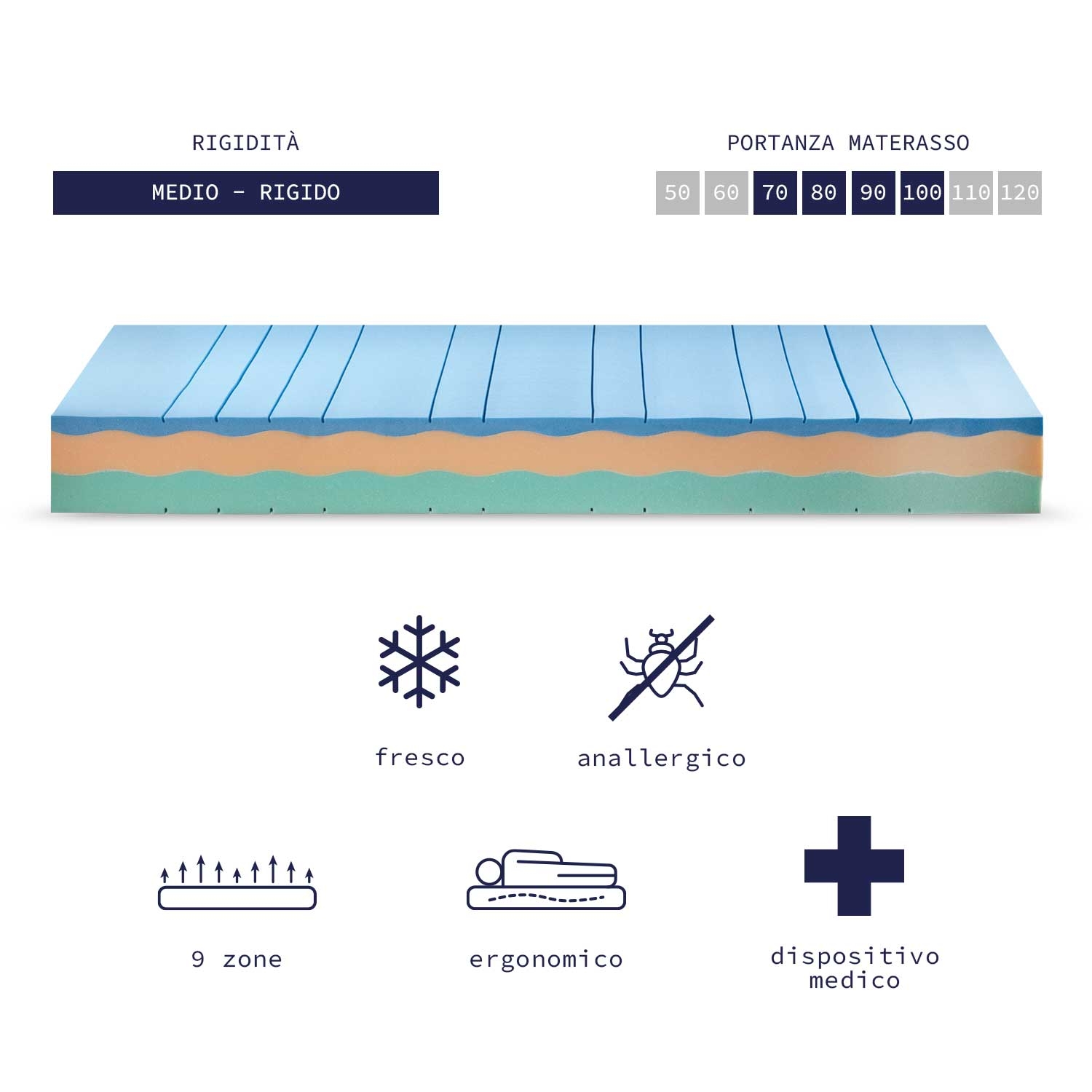 - 9 zone differenziate: seguono i profili corporei, riducendo i micro-movimenti notturni per un sonno più continuo.
