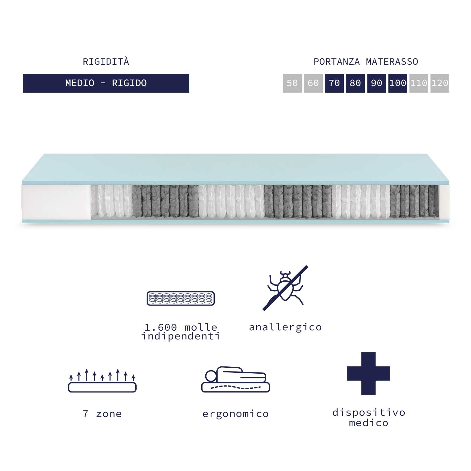 - Rigidità: MEDIO RIGIDO (H2–H3–H4), 70–100 kg