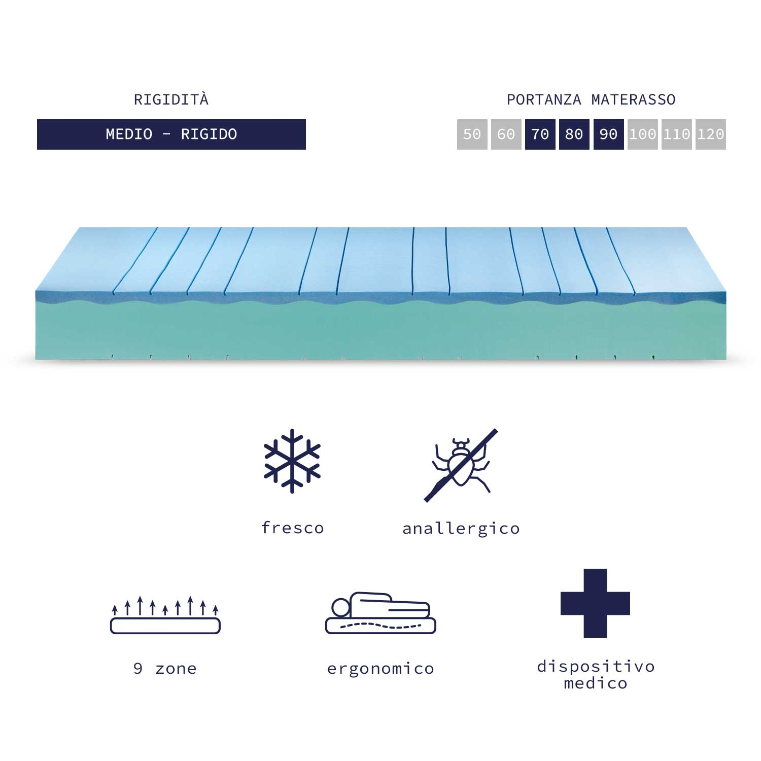 - Zone differenziate: 9 zone per accompagnare i profili corporei e limitare i micro-movimenti notturni.