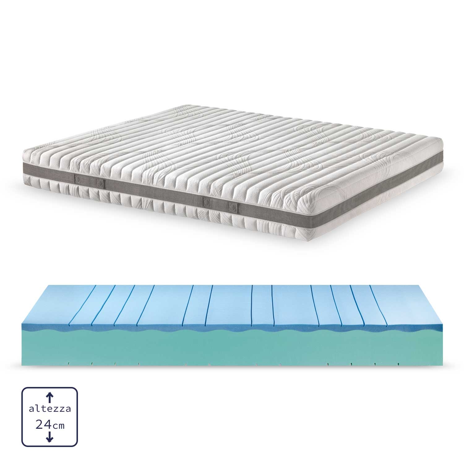 - Strato 1 – Memory Ergo Fresh 4 cm: accoglienza progressiva, riduzione dei punti di pressione e migliore gestione di calore/umidità.