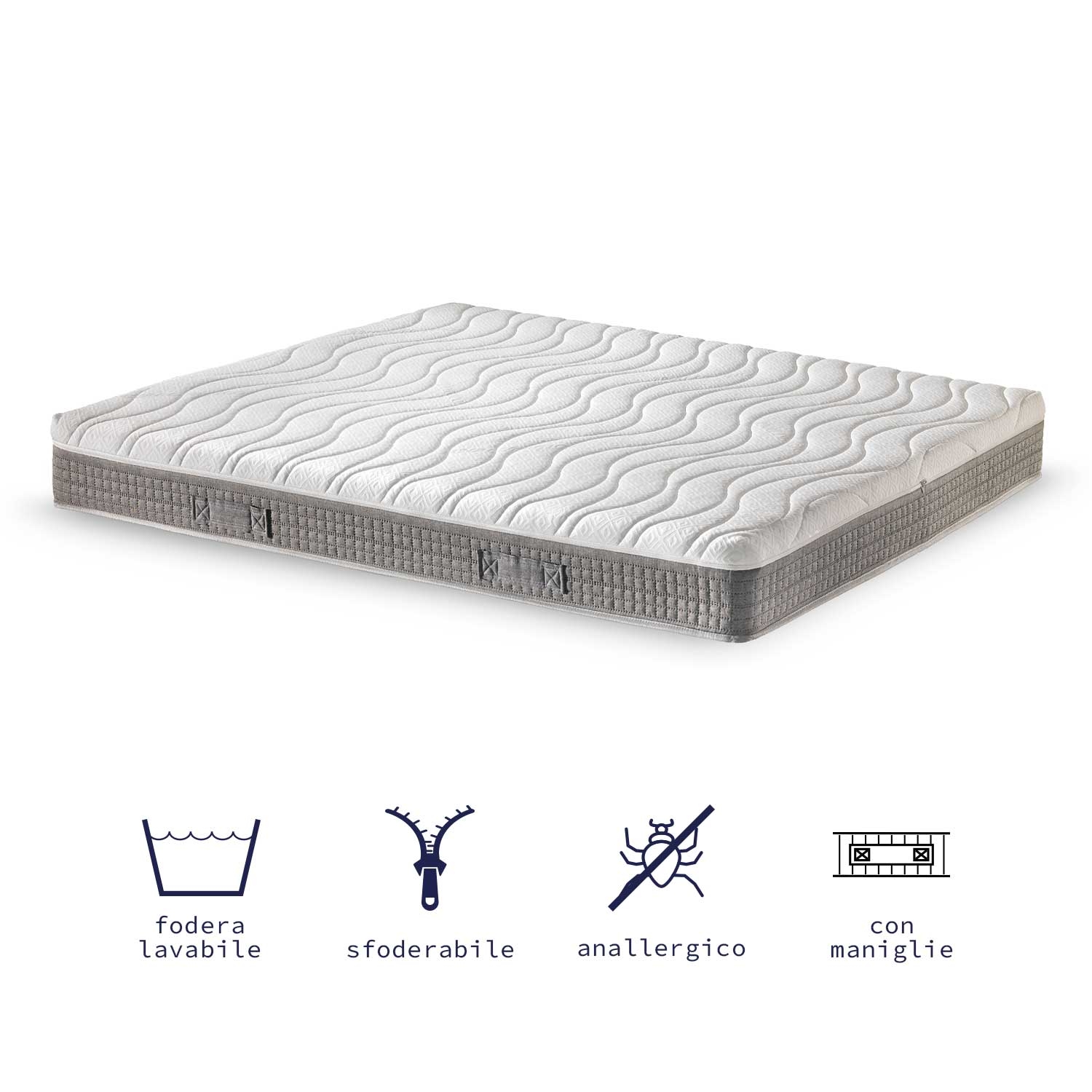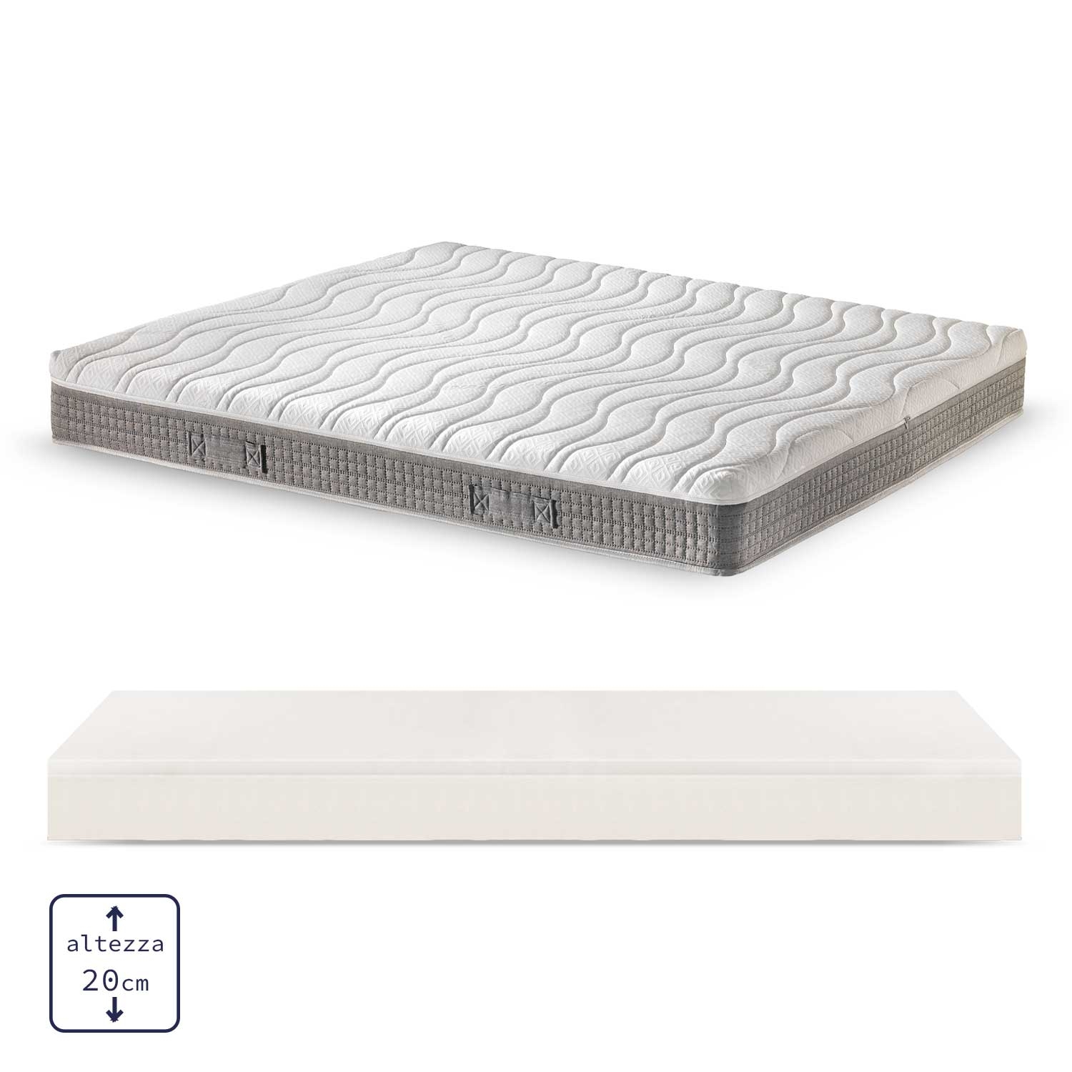 Picasso è un materasso Memory dal profilo calibrato: lo strato superiore in Memory addolcisce i punti di pressione, mentre la base in Schiuma Flessibile assicura un sostegno costante. La configurazione monozona garantisce un appoggio uniforme e una buona gestione del microclima. Anallergico, sfoderabile e dotato di 4 maniglie, è indicato anche per reti articolate motorizzate.