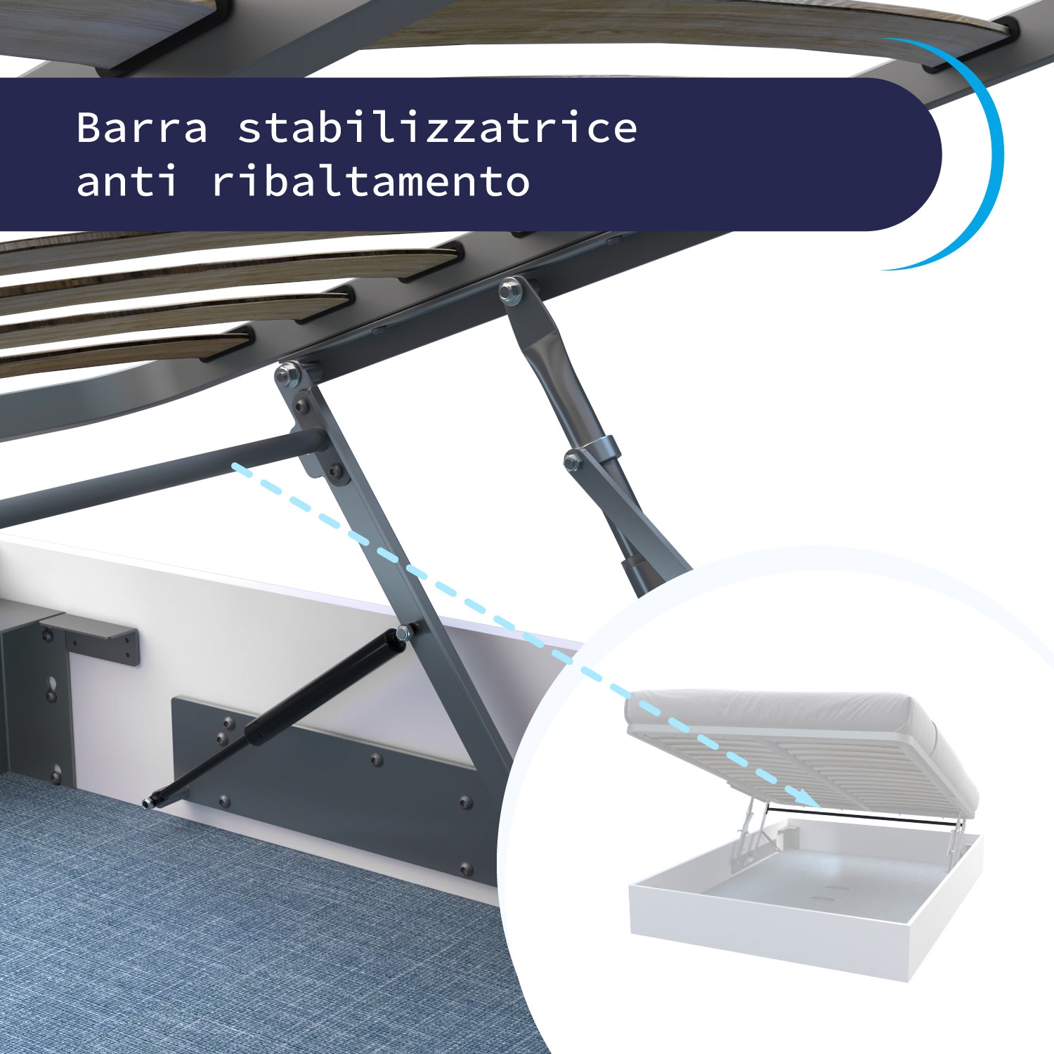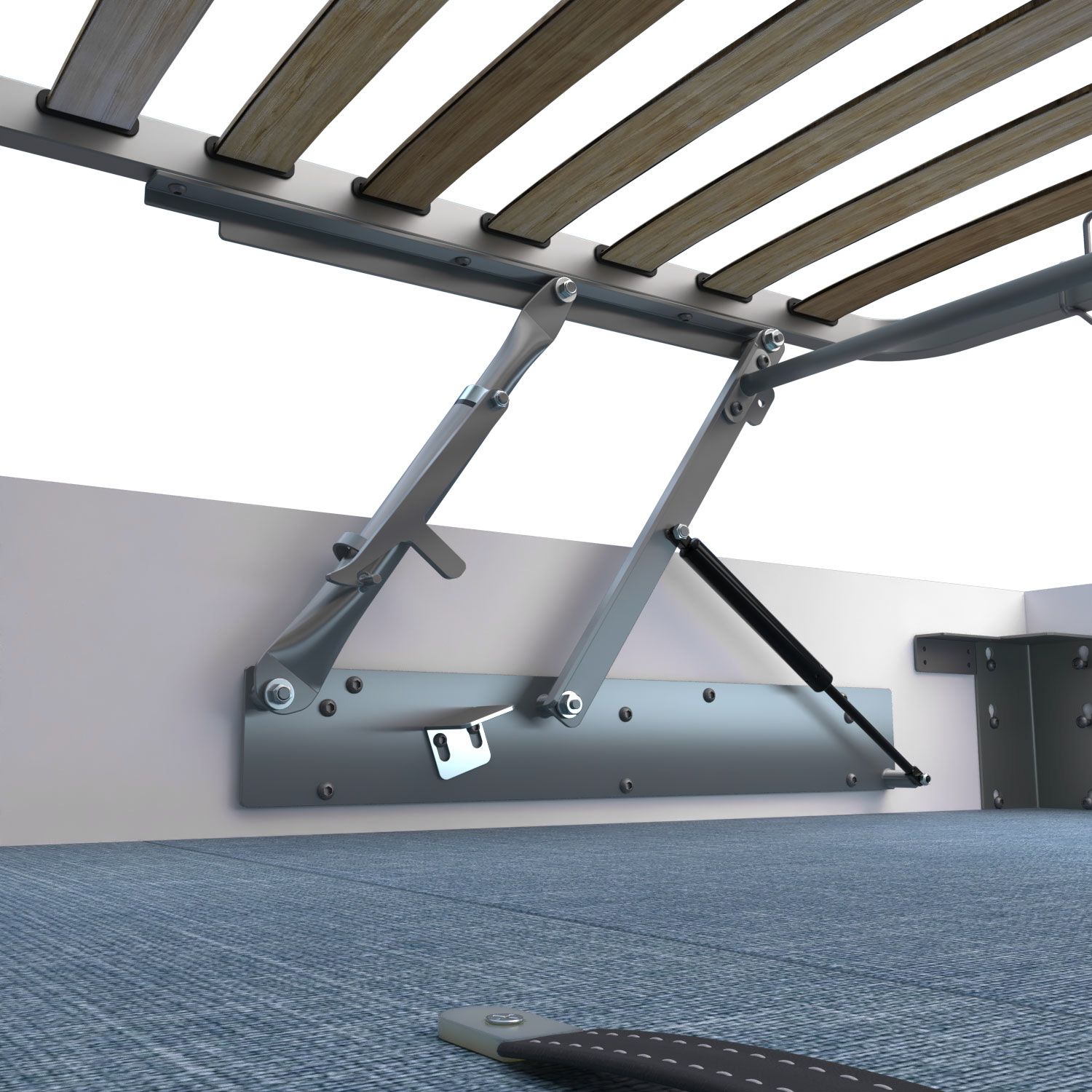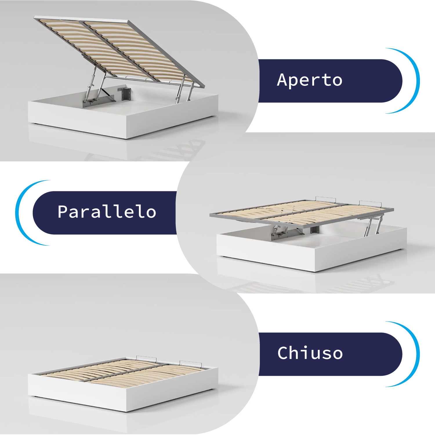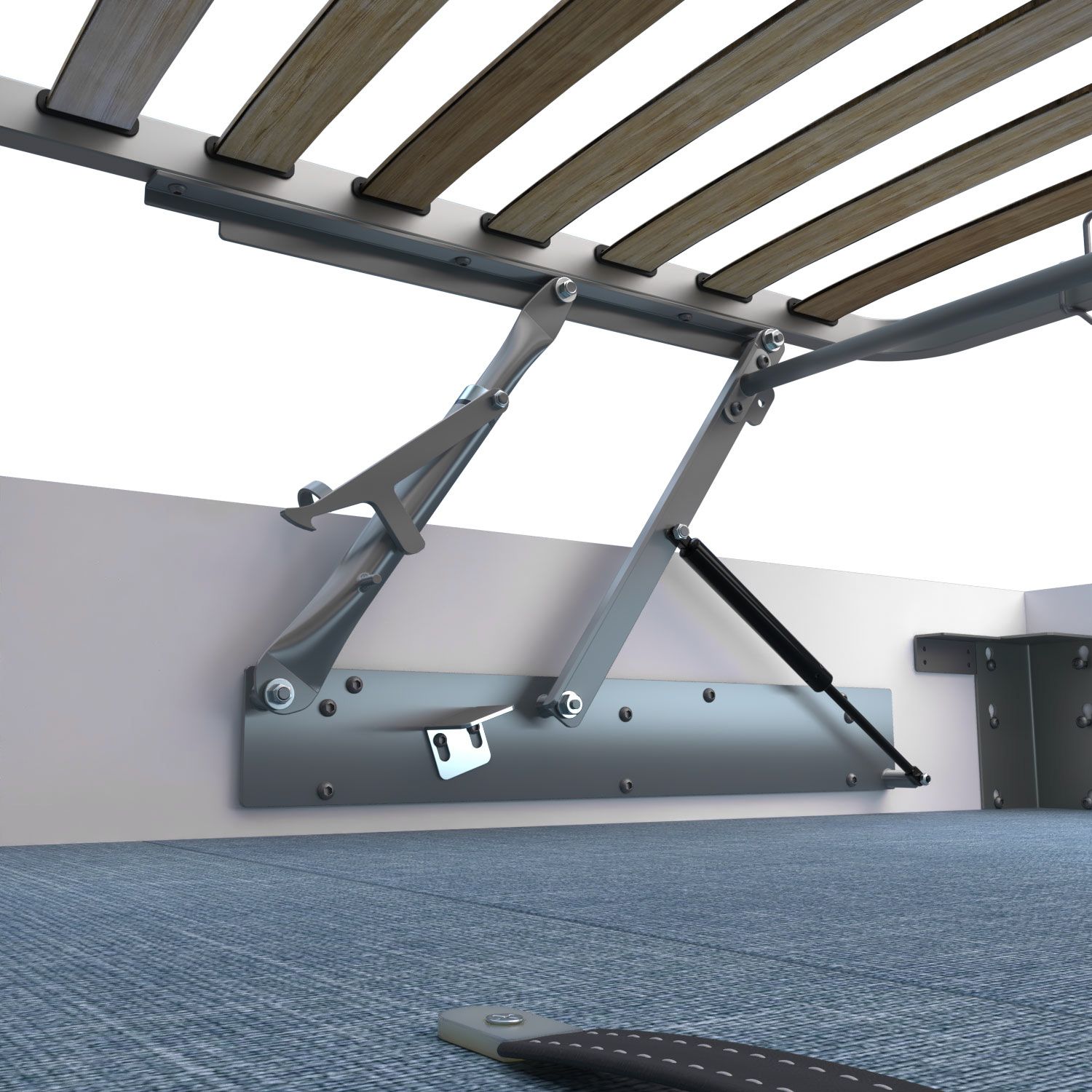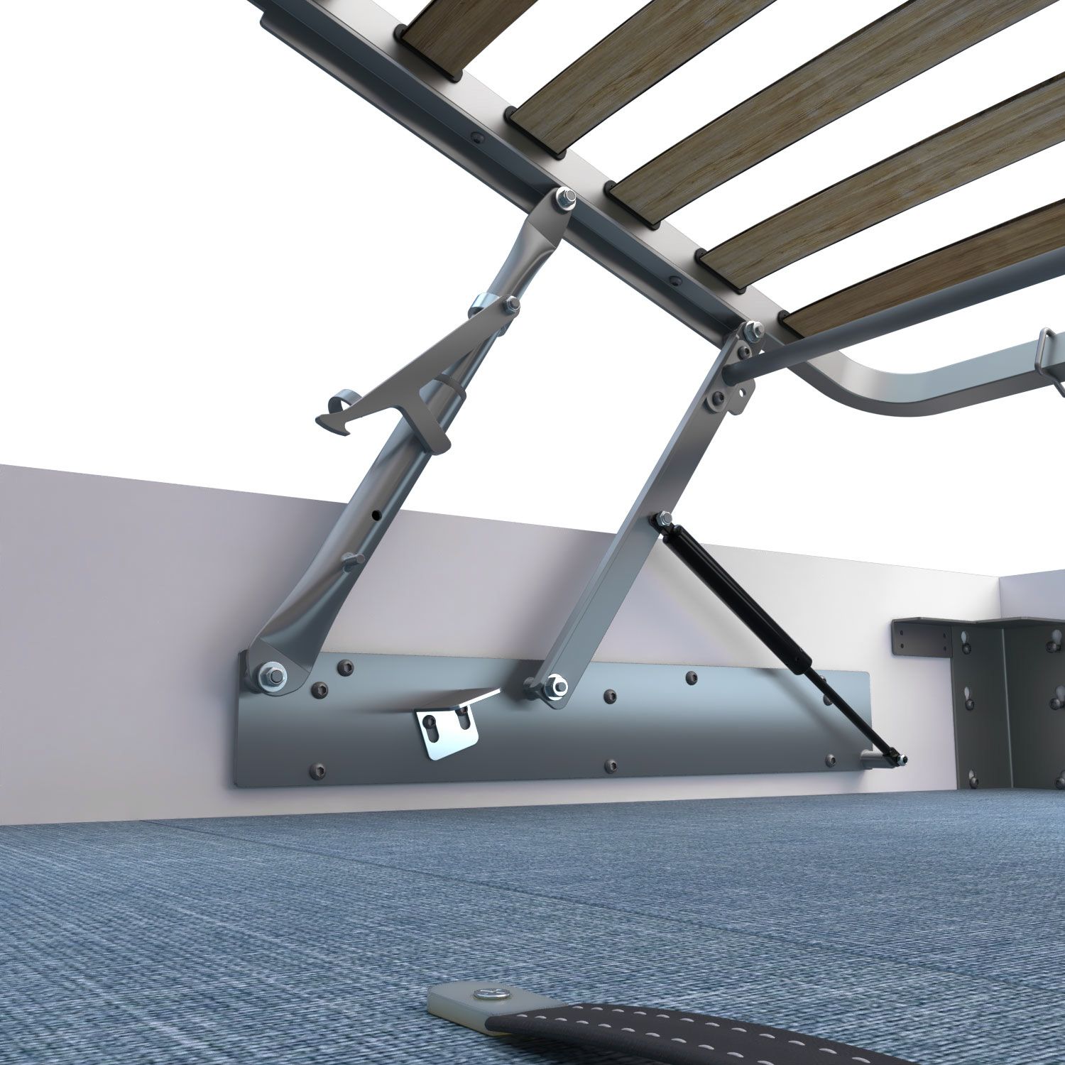 Il sistema di sollevamento Professional permette di sollevare il letto in due posizioni distinte: ad angolo fino a 45° per un facile accesso al vano contenitore e orizontale e sollevato per facilitare il cambio e il rifacimento del letto.