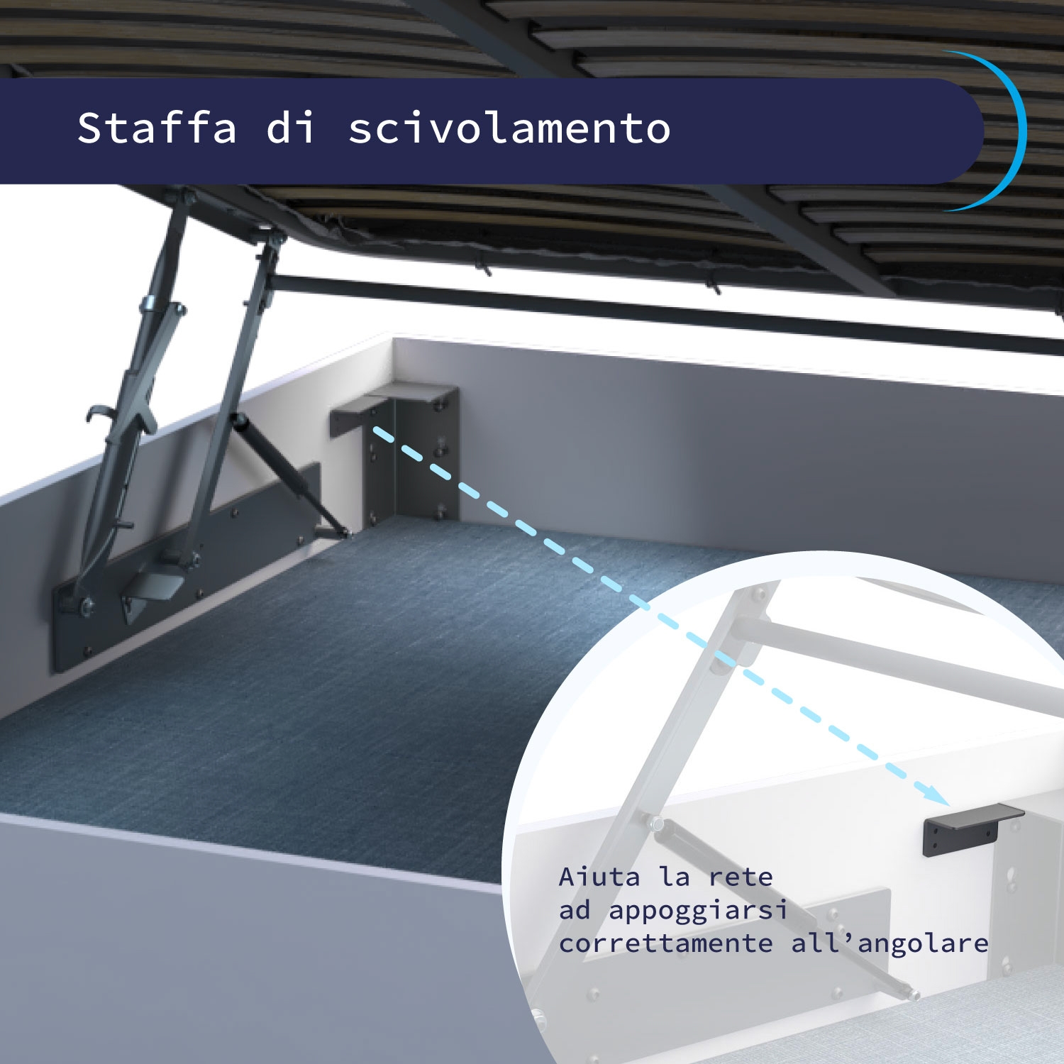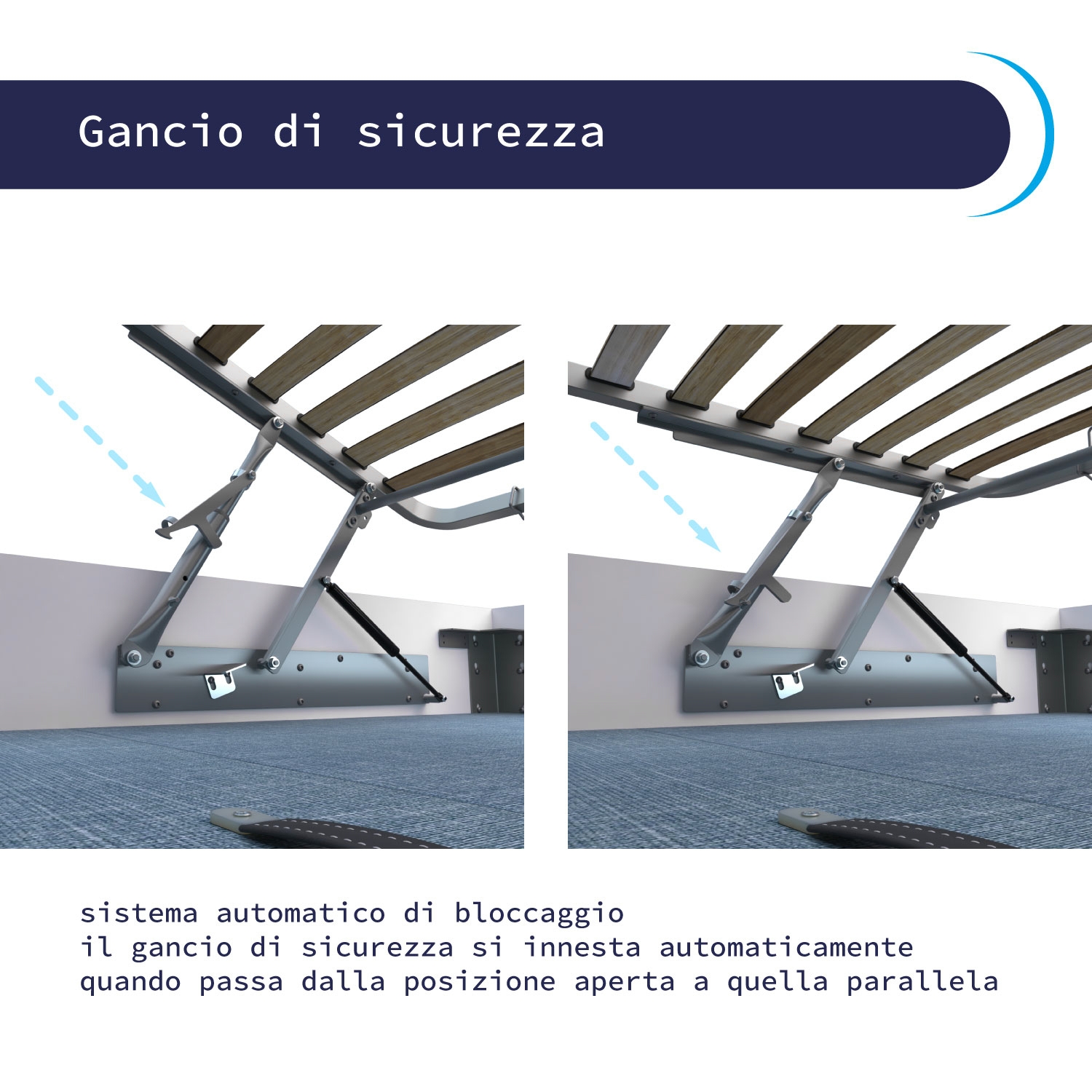- 2 molle a gas, capaci di sviluppare una forza pari a 800 N per controllare l'alzata angolare – fino a 45°