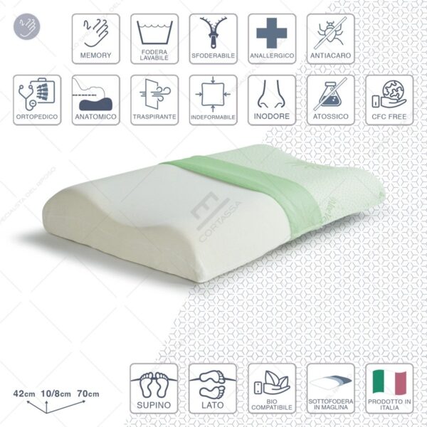 - Sollievo ai dolori alla testa e alle spalle. Un guanciale di alto profilo con uno speciale design ergonomico con le estremità ad arco che si adatta alle vostre spalle. Il guanciale Anatomic Curve consente di evitare l'effetto "di respinta" garantendovi un eccellente sostegno: una scelta comune fra chi soffre di dolori al collo, alla schiena e alle spalle.