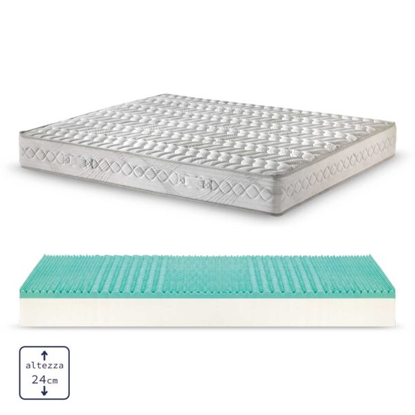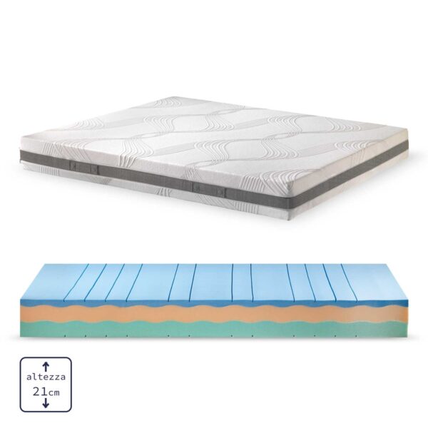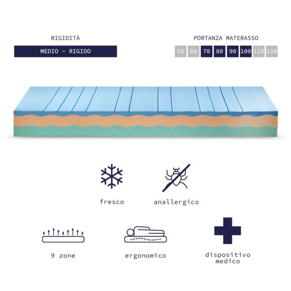 Rivestimento coolmax soffice fibra anallergica, con elevate capacità di traspirabilità ed assorbimento dell’umidità del corpo, inibisce la proliferazione degli acari.