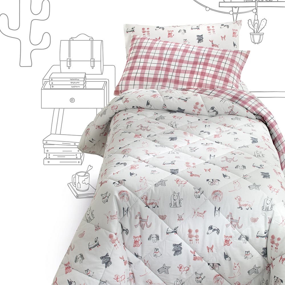 Trapunta Woof – Un disegno inedito e originale con Woof, la trapunta della Collezione Teen di Gabel 1957. Una collezione fresca, giovane e in linea con le tendenze amate dai ragazzi di oggi, nata in collaborazione con gli studenti dell Ist. Casnati di Como, scuola di riferimento per futuri creativi. Stampata con tecnica digitale su tessuto Sweet Touch, morbida saia jacquard da 58 fili al cmq con motivo piazzato double-face. Tessuto sotto: tela di puro cotone da 58 fili al cmq e imbottitura: morbida fibra anallergica rigenerata di poliestere da 320 g/mq. Disponibile nella dimensione una piazza (cm 170×260), una piazza e mezza (cm 220×260), in due originali varianti colore. Indispensabile nelle fredde notti d inverno, donerà una piacevole sensazione di calore per un rilassante riposo.La collezione è interamente prodotta nei nostri impianti produttivi in Italia e certificata STeP by Oeko-Tex.